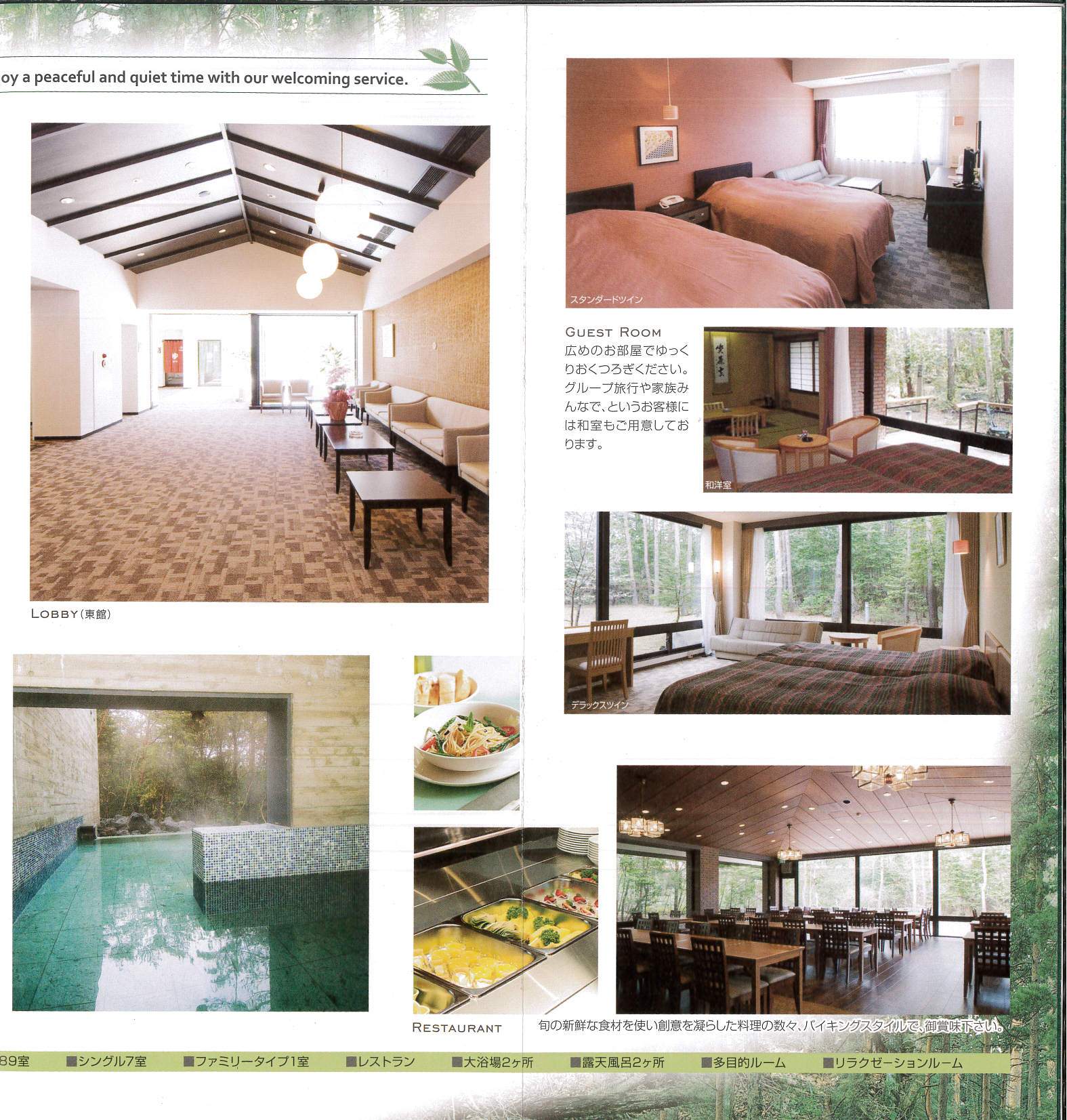 日本有数の樹海に隣接するリゾートホテルです。大自然に包まれお部屋に居ながら森林浴気分。